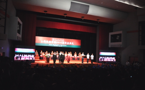 今日上午8时半,2010届毕业典礼在上戏剧院隆重举行,市教委副主任王奇,校领导楼巍、韩生、刘志钢、孙惠柱、黄昌勇、宫宝荣,校学术委员会主任叶长海,校务委员会副主任葛朗,院长助理徐幸捷,各院系领导龙俊杰、刘永华、陆军、卢昂、赵韫颖、陈家年、孙福良,教务处处长陈其毅、副处长厉震林,公教部副主任陈敏等在主席台就座。各(院)系和有关部门领导、研究生导师、毕业班班主任、辅导员和全体应届毕业生及家长一同出席了毕业典礼。毕业典礼由院长助理王宏舟主持。