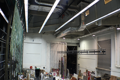 由于土地紧张的原因,可以说该校的每一寸空间都得到了最充分的利用。鲜亮明快的色调、简单实用的设计使人置身于这有限的空间并不会感动局促和压抑。当然,这也应该归功于他们对工作的专业化要求。据物业总监(类似于我们的后勤基建部门负责人)介绍,他们是请专业的规划设计公司研究学校的空间利用的,加层改造,拓展延伸,边角利用……各种可能他们都做到了。有一个细节,给我们印象很深,那就是他们的“一棚连三院”:绘景棚连接着三个剧院,道具、设备的保管、运输等非常方便,既节约了空间,也提高了效率。