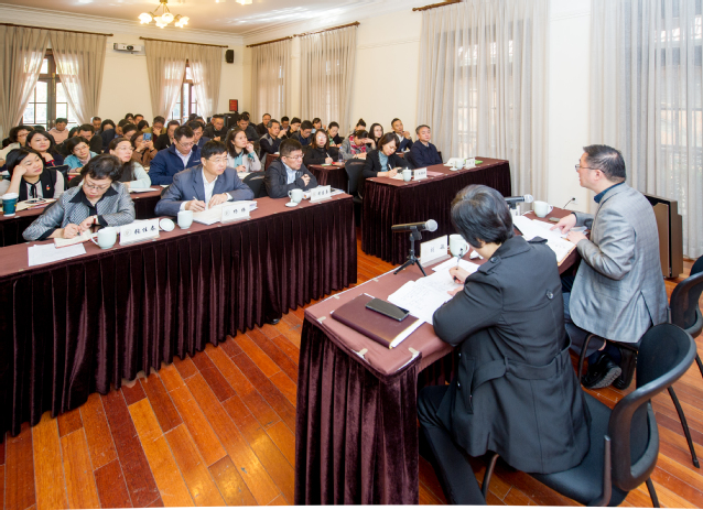 最后,党委书记谢巍做了总结发言,就学习贯彻四中全会精神、习近平总书记视察上海的讲话和主题教育要求提了四点意见:一是把学习十九届四中全会精神、习近平总书记考察上海的重要讲话精神和主题教育紧密结合起来,作为当前重要的政治任务和学习重点;二是坚定制度自信,推动四个自信进课堂、进教材、进头脑,提高思政工作的底气和水平,完善办学治校的体系和能力;三是要积极融入上海新时代改革开放的生动实践,讴歌时代、讴歌人民,创作出更多更好的文艺作品;四是我们要全力以赴确保主题教育活动取得实效。(文:立峰 图:佳奇 编辑:榕树)