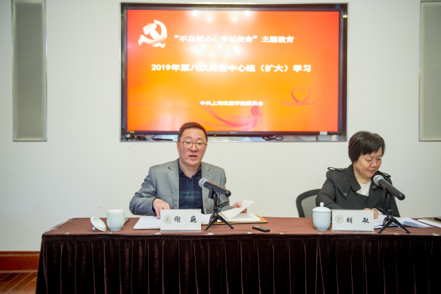 2019年11月9日上午,我校在华山路校区佛西楼二楼会议室召开党委中心组(扩大)学习,专题学习十九届四中全会公报,习近平总书记参加第二届进博会时考察上海的重要讲话,并部署了进一步开展“不忘初心、牢记使命”主题教育工作。学校党委常委、全体中层干部及相关人员参加,会议由党委书记谢巍主持。