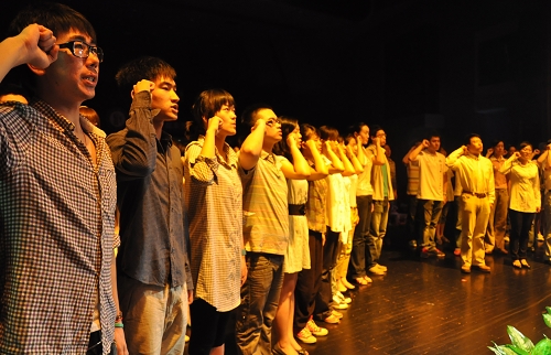 与会人员齐唱《国际歌》,会议在庄严的歌声中结束
