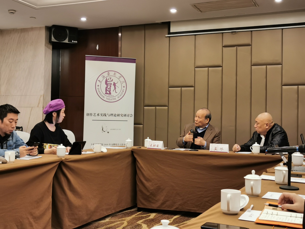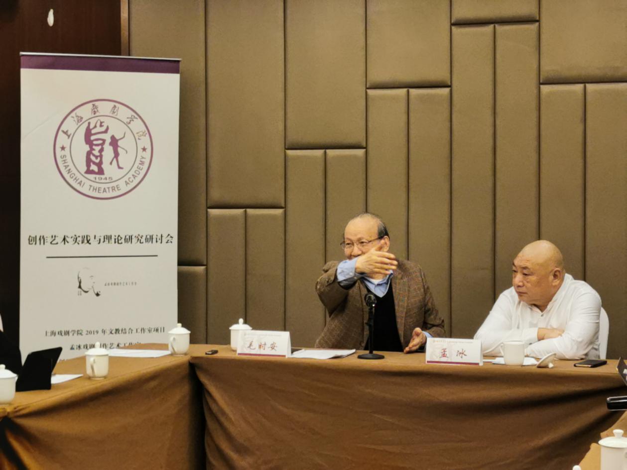 同时,中国文艺评论家协会副主席毛时安老师也对该剧和今后的创作提出了自己的看法并且对在座的同学们进行了理论上的指导。毛时安先生首先肯定了《迷航记》宏大背景与小型叙事的结合,并以人本主义和启蒙话语,对编剧和主创们提出要创作出符合当代社会背景的戏剧作品,并且以《糊涂戏班》和《哥本哈根》两剧为例,指出要在创作前期明确作品的目的导向,这样才能创作出“不偏离预定轨道”的作品。而在创作过程中,从一个概念到最终的文本呈现,都需要进行素材的选择,语言的呈现最终要凝练、准确,并且以《桃花扇》为例,指出全本和折子戏的区别就在于文学性和戏剧性,这也是本次编剧教学工作坊的探讨内容之一:如何将文学形象展现在舞台上。