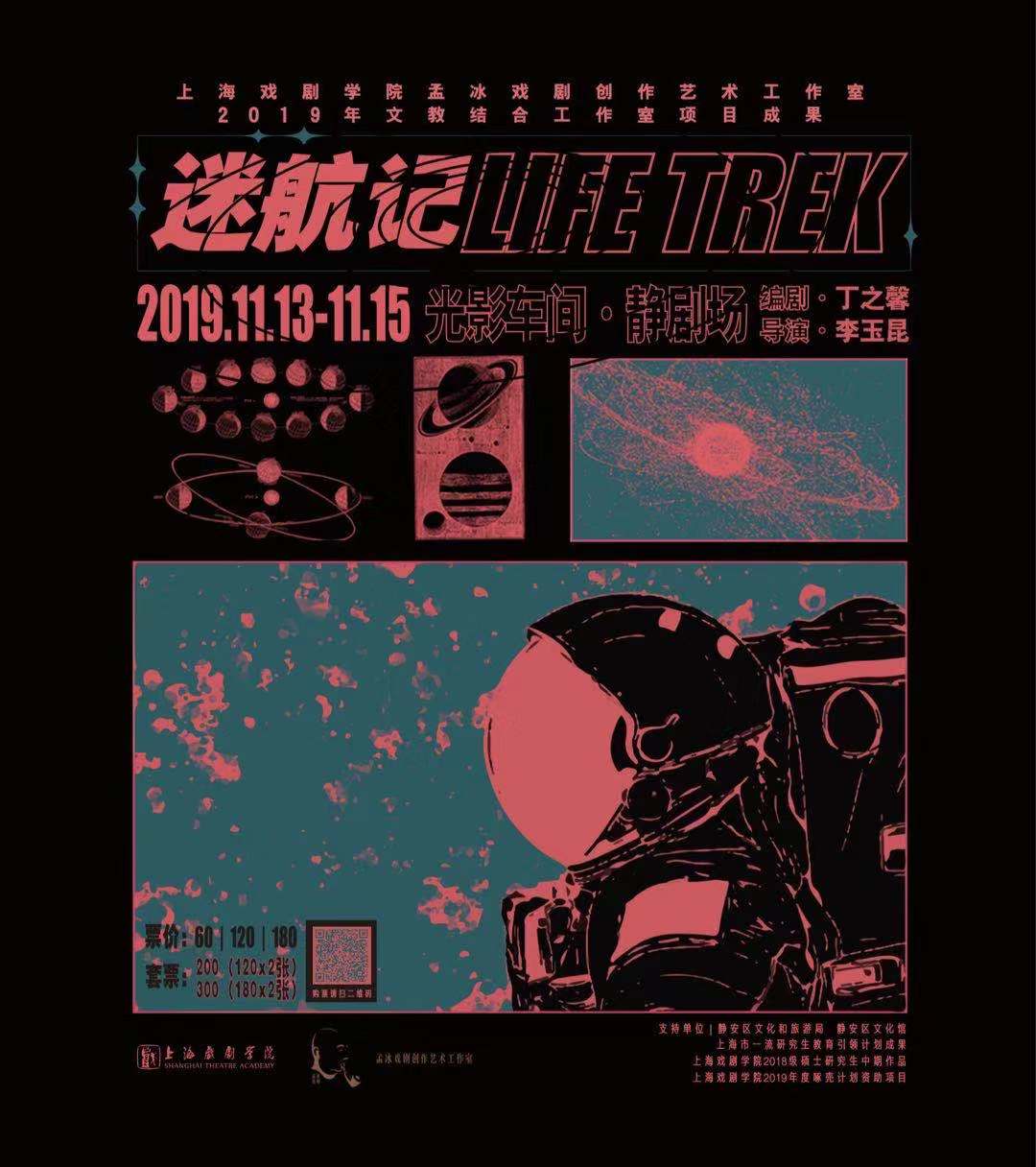 原创话剧《迷航记》是上海戏剧学院2019年文教结合工作室——孟冰戏剧创作艺术工作室项目成果,同时也是上海市一流研究生教育引领计划成果、上海戏剧学院2019年度啄壳计划资助项目、上海戏剧学院2018级编剧MFA中期作品。作品将故事背景置于当下热门话题——宇宙太空,讲述宇航员穆生在进行星际探索中记忆与现实发生错乱,与母亲、妻子、年幼的自己交织在一起时回顾了自己的一生并认清了自己,在最终抵达了梦想的粉色河外星云时,面对返航还是放逐的选择,最终选择了“快乐”……