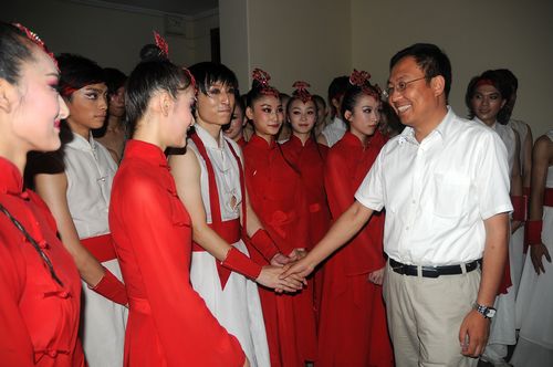 7月22日下午六点,陈家年院长召集所有指导教师和工作人员开会,针对比赛中出现的小的瑕疵进行指导,并要求指导教师采用鼓励安慰和强化训练相结合的方式,抓紧决赛前的时间,坚持练功和排练,做到尽善尽美。林剑龙书记也非常关心同学们的生活,再三叮嘱要注意饮食和出行安全,要求工作人员及时购买水果派发给每位同学。