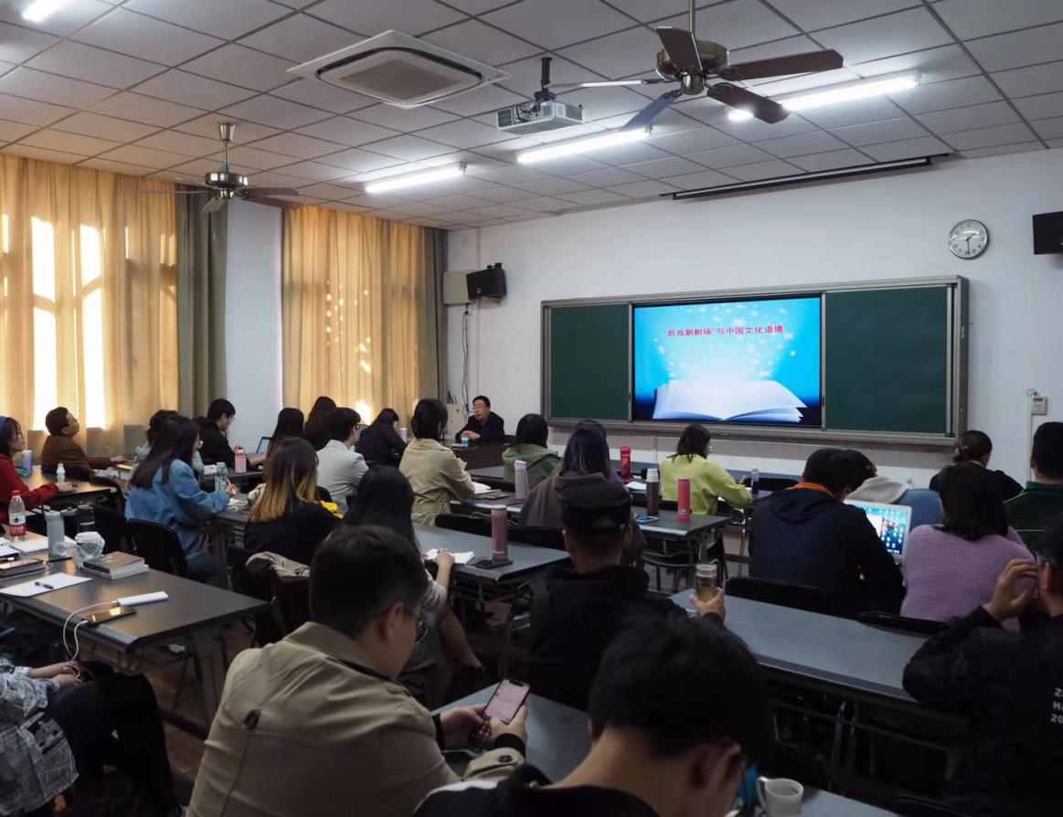 2019年11月14日下午,戏文系主办的《人文传承与治学方法》系列讲座在红楼202教室展开第四场。本次讲座由戏文系党支部书记张璟老师主持,并邀请到上海戏剧学院研究生部原主任、戏文系原主任丁罗男教授,为同学们讲述《“后戏剧剧场”与中国文化语境》。