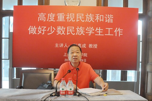 8月29日,新学年伊始,上海市“东方讲坛”讲师、资深民族宗教问题研究专家彭高成教授应邀来校做民族和谐专题辅导报告,学校有关院系、部门的近五十名同志听取了报告。报告会由院长助理王宏舟主持。