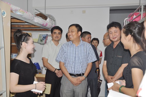 昨天是新生报到的日子,为了解新生寝室入住、开学生活是否顺利等情况,8月31日中午,党委书记楼巍、院长助理王宏舟,新疆文化厅人事处副处长阿不拉江在我校各院、系、部领导的陪同下共同看望了新生寝室。
