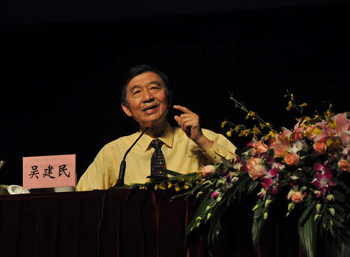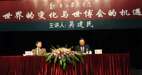 吴建民院士为我国外交事业做出了卓越贡献,曾为毛泽东、周恩来、陈毅等老一辈国家领导人担任翻译。我国恢复在联合国的合法席位后,吴建民院士是我国常驻联合国的第一批工作人员。改革开放以来,吴建民院士先后担任我国外交部新闻司司长兼发言人、我国驻荷兰、瑞士和法国大使。2003年回国后,吴建民院士曾担任全国政协外事委员会副主任、外交学院院长等职务,2003年12月当选为国际展览局主席,现任国际展览局名誉主席、欧洲科学院副院长、院士和上海后世博研究中心主席。吴建民院士的讲座围绕“世界”、“文化”和“世博会”三个主题词展开,他说,当今世界的局势已经发生了重大转变,已由战争与革命的主题转变为和平与发展,在文化上要充分尊重各个国家特定的文化特色,要抓住世博会带给我们的机遇,创造更加美好的发展空间。