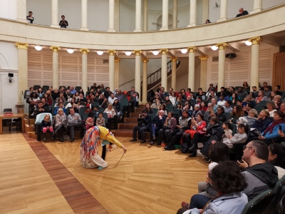 11月5日19:00,法国拉罗谢尔大学文科大楼剧场里座无虚席,上海戏剧学院应邀赴拉罗谢尔大学孔子学院的演出拉开帷幕。首先上海戏剧学院戏曲学院副院长黄暾炜和拉罗谢尔大学孔子学院法方院长Martine Raibaud分别为本场演出致辞,热烈地表达了促进中法文化交流、促进中法人民友谊的愿望。随后,京剧折子戏《三岔口》、《火判》、《拾玉镯》、《霸王别姬》、《天女散花》、《盗草》、《墙头马上》依序登场。在每出折子戏换场期间,主持人都会和台下观众互动上一出折子戏所表达内容,观众们对京剧兴趣浓厚,参与互动十分踊跃。