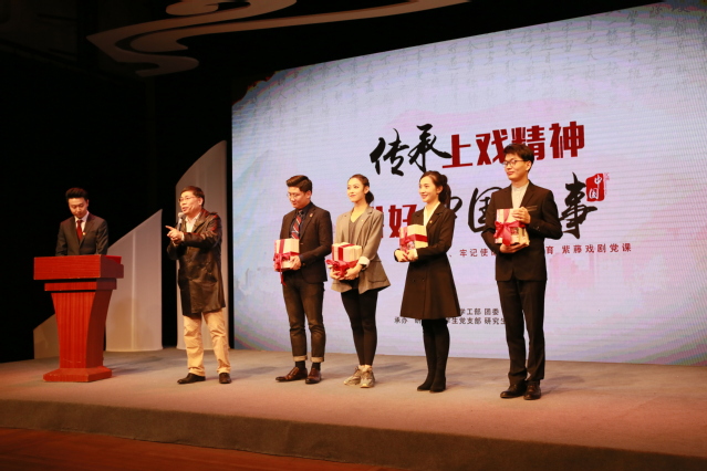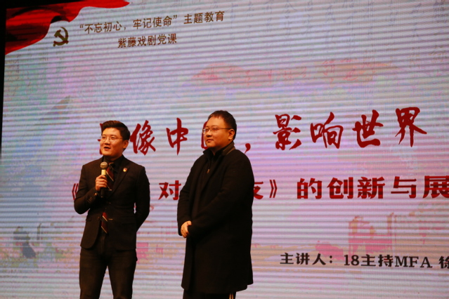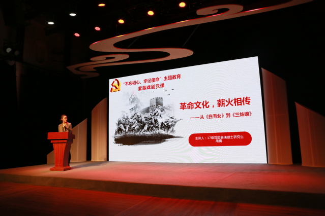 为深入开展“不忘初心、牢记使命”主题教育,11月20日晚,由上海戏剧学院研究生部、学工部、团委主办,研究生部学生党支部、研究生会承办的“传承上戏精神、讲好中国故事”紫藤戏剧党课于新空间剧场正式开讲。出席本次活动的领导和嘉宾有上海戏剧学院党委书记谢巍,党委副书记胡敏,组织部部长、人事处处长、教师工作部部长陈云,研究生部主任、影视学院院长厉震林,学工部副部长李冬梅,人事处副处长何亮,宣传部副部长包立峰,离退休党总支副书记吴斌,人文社科部党支部副书记施华东,舞蹈学院原院长凌桂明,党委宣传部原部长、表演系党支部原书记张生泉,科研处原处长、影视学院党支部原书记姚扣根,以及相关职能部处的老师。