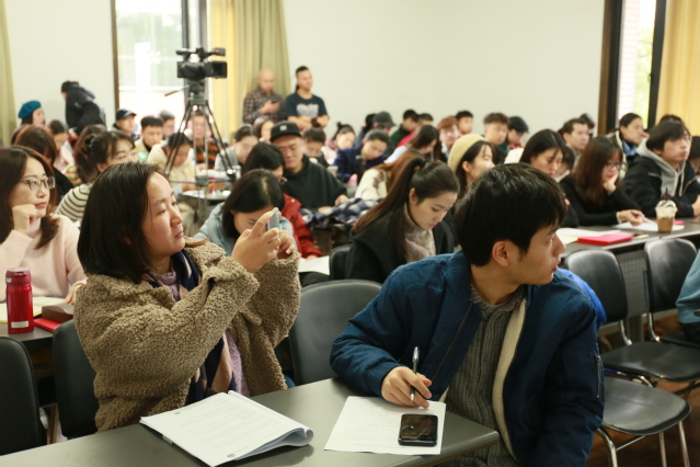 颁奖仪式后,研究生部特邀了本次剧本大赛评审专家张文军老师做题为“青年编剧的格局”的主题讲座,张文军老师从个体、社会和哲学三个层面阐述了“格局”对于一名的编剧的重要意义。无论是“个体”的机遇、才情和日常积累等基础要素,还是从“社会”层面找寻更多的平台扶持都在一名青年编剧成长过程中发挥了重要作用。读万卷书,行万里路,知行合一而后能格物致知,张文军老师的此次讲座从两个方面向我们证明,当代青年不能脱离生活和社会基础,要保有应对知识和文化的敬畏之心,大胆创作优秀的与社会接轨的剧本,对在场的所有青年编剧和研究生都有很大的启迪和增益。