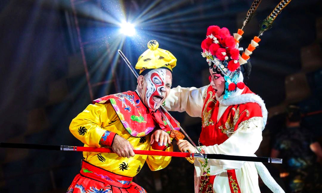 Ghaffar与上海昆剧团的钱瑜婷合作,演出了《借扇》选段。他扮演的美猴王一出场,便赢得了台下观众的瞩目,眼神、动作、唱腔,一招一式,有板有眼。他特地勾了一半的脸,若不是不着粉墨的另外一半“洋面孔”,很难想象舞台上的美猴王竟是一位“老外”。一段美猴王的耍棍表演,功力扎实,造诣深厚,极具表现力,博得了满堂喝彩。