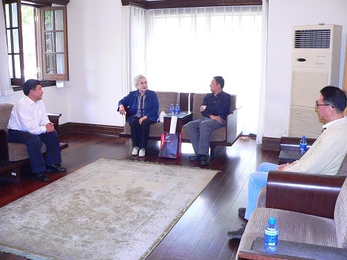 10月9日上午,我国著名表演艺术家秦怡到访我校,党委书记楼巍、院长韩生在学校贵宾室亲切接待了这位88岁高龄的优雅女性。
