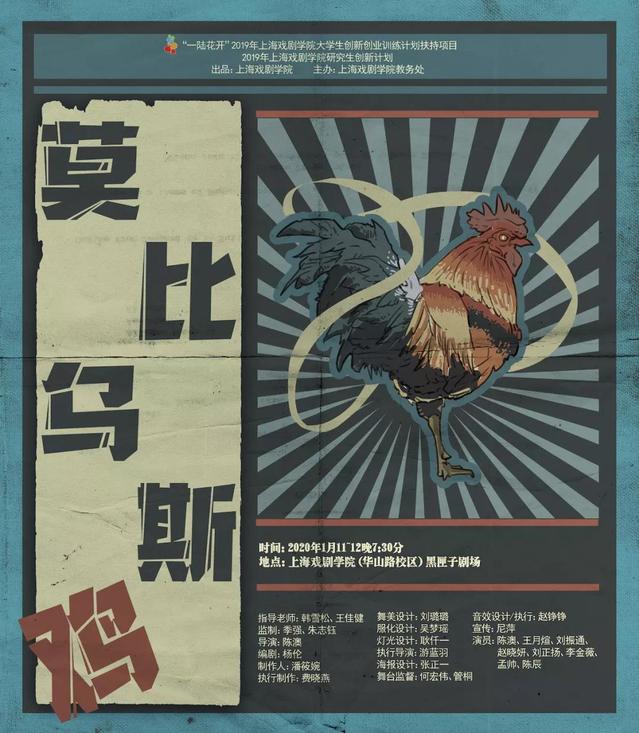 原创话剧《莫比乌斯鸡》将于明年1月11、12日在上海戏剧学院华山路校区黑匣子剧场上演。
