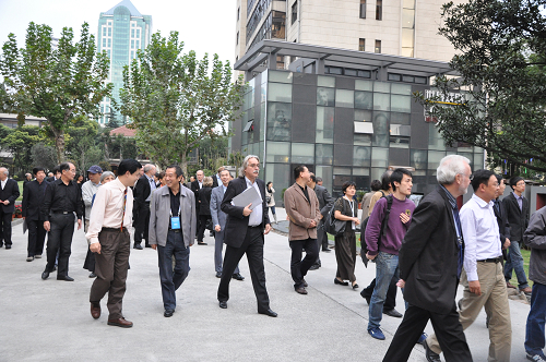 图为楼巍书记、韩生院长陪同嘉宾参观校园