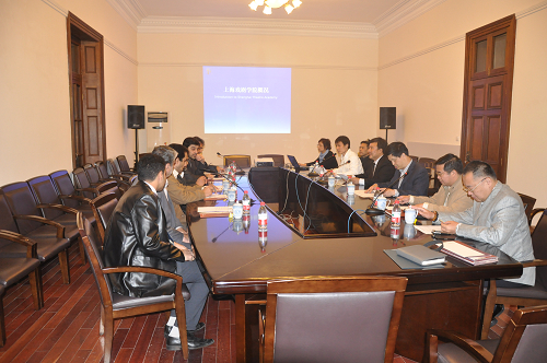 韩生院长首先致欢迎辞,对贾瓦德・沙马达瑞一行的来访表示热烈的欢迎,并介绍了上海戏剧学院的建校历史、办学现状和发展前景等内容。双方进行了友好亲切的交流和探讨,贾瓦德・沙马达瑞表达了同我校开展演出交流等多项国际合作的意愿,希望双方今后能够在文化、艺术等方面建立起有更加深入和长远的合作关系。