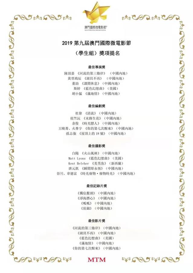 值得赞许的是,在一流研究生教育建设期内,多名艺术硕士履获国内外专业奖项。2016级影视导演艺术硕士戴轶飞(导师:方虹教授)的毕业创作《骑士》获中宣部宣传局主办的第三届社会主义核心价值观微电影征集展示中获得作品一等奖及优秀编剧奖;2017级电影导演艺术硕士侯竺沅(导师:詹新教授)的作品《末路生花》相继获得2019年美国第六届旧金山新概念国际电影节最佳影片奖、美国洛杉矶第十五届中美电影节最佳短片三等奖、第九届澳门国际电影节最佳编剧提名奖等专业奖项。