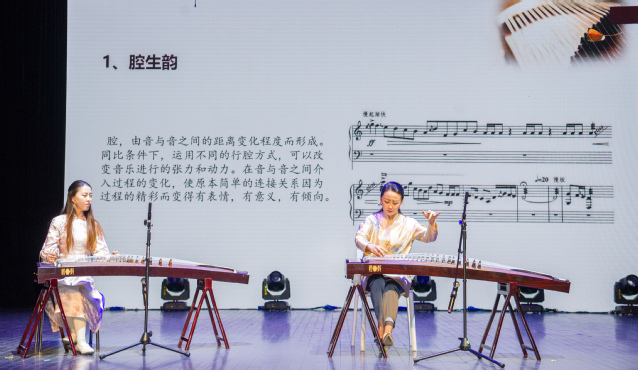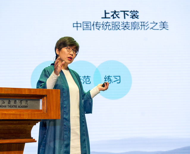 在课程思政示范展示课中,获得教学成果奖·新秀奖的教师代表伍洋带来了《主修乐器(古筝)》的教学展示,获得教学成果奖·教学奖的教师代表邵旻带来了《服装设计技巧与方法》的教学展示。两位老师积极挖掘专业课程中的思想政治元素,润物细无声的将价值的塑造融入到课程教学的各个环节,使思政内容与专业课程内容有机融合、相互促进,引人入胜地引导学生理解中华传统文化,引领学生牢固树立文化自信,对学生道德素养熏陶濡染。