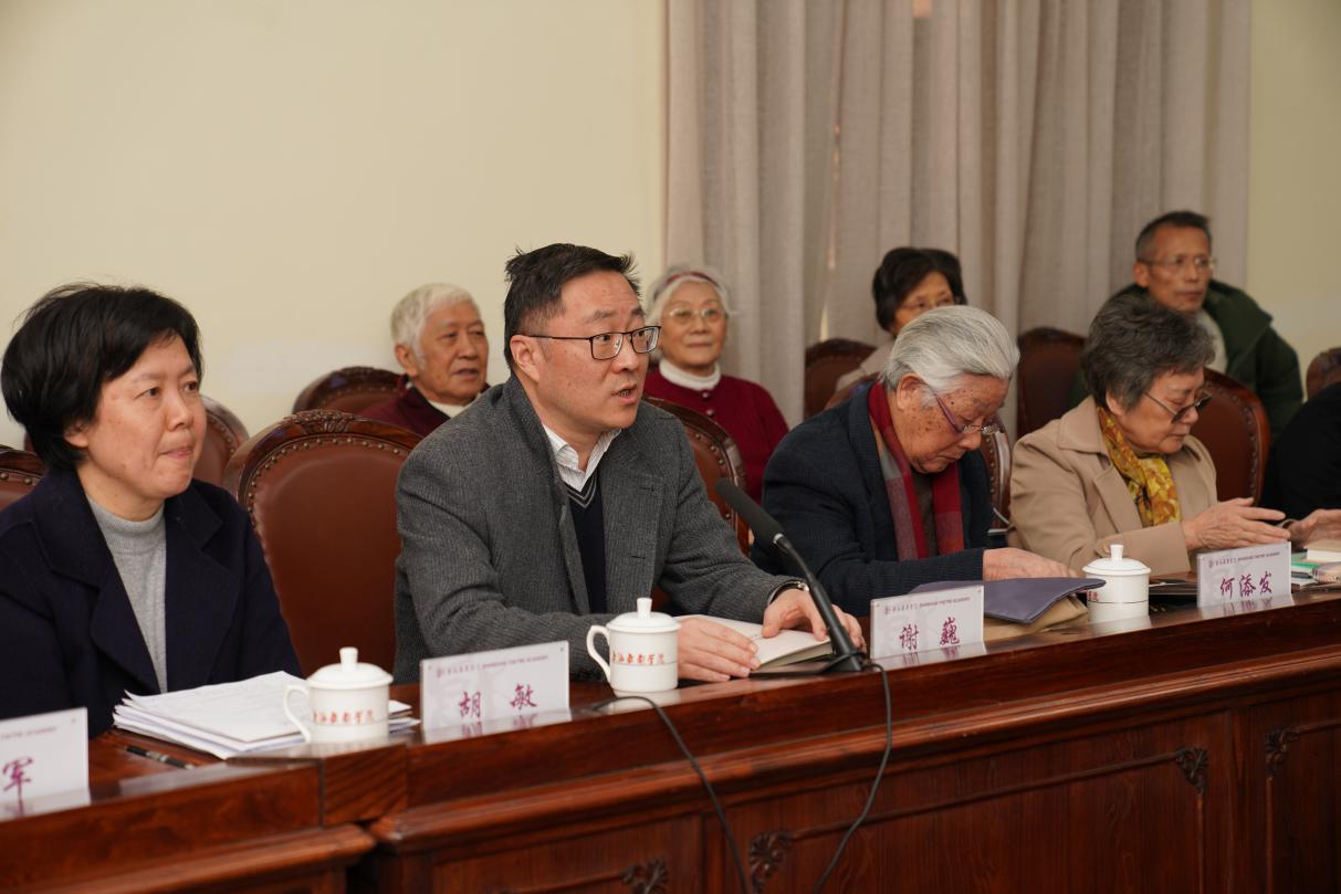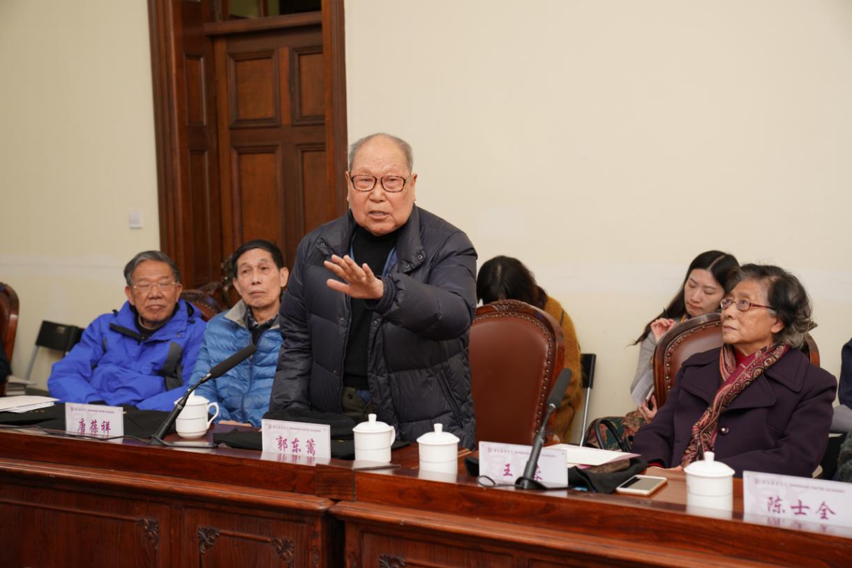 戏文系主任陈军教授主持了纪念研讨会的发言。上海戏剧学院原党委书记何添发和戴平回顾了学校的历史,对陈古虞教授的学术贡献给予了高度肯定,在回忆了与陈古虞教授交往的点点滴滴之后,戴平书记呼吁上戏要从校史中总结经验,从以陈古虞教授为代表的前辈身上继承传统,继续保持一流的学风和水平。陈古虞教授的侄女王蓉女士特地从外地赶来,她追忆了陈古虞教授专心治学的往事。她讲道,陈古虞教授晚年身体状况欠佳,常常深夜抱病订谱,他热爱中华传统优秀文化,始终将传承昆曲作为自己的使命,他这种精神一直在感染着身边人。陈古虞教授年轻时曾经拜北昆名旦韩世昌为师,学习了《刺虎》《夜奔》等许多剧目的身段,后来他应上海昆剧团之邀指导了昆剧演员华文漪等人的表演,上海昆剧团编剧唐葆祥先生回忆起这段往事时,仍然被陈古虞教授当年严谨认真的教学态度而感动。上海师范大学翁敏华教授讲述了陈古虞教授给她讲授昆曲的经历,讲到动情处她几度哽咽,对她而言,陈古虞教授是一位值得终生敬佩的前辈。随后,上戏退休教师代表郭东篱、曹树钧、田雨澍三位教授深情回忆了陈古虞教授在上戏教学时的往事。