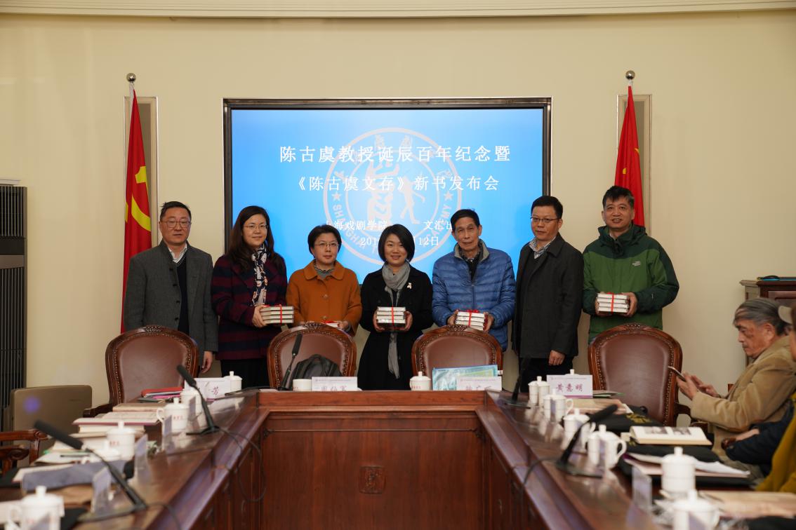 2019年12月12日,陈古虞教授诞辰百年纪念暨《陈古虞文存》新书发布会在我校佛西楼会议室举办,本次活动由上海戏剧学院和文汇出版社联合主办,由上戏离退休工作处、戏文系和戏剧学研究中心承办。上海戏剧学院党委书记谢巍、党委副书记胡敏,文汇出版社社长周伯军,上海戏剧学院原党委书记何添发、戴平,上海戏剧学院学术委员会主任陆军,上戏离退休教师代表、有关职能部门领导,以及陈古虞教授的亲属、同事及学生代表参加了本次活动。