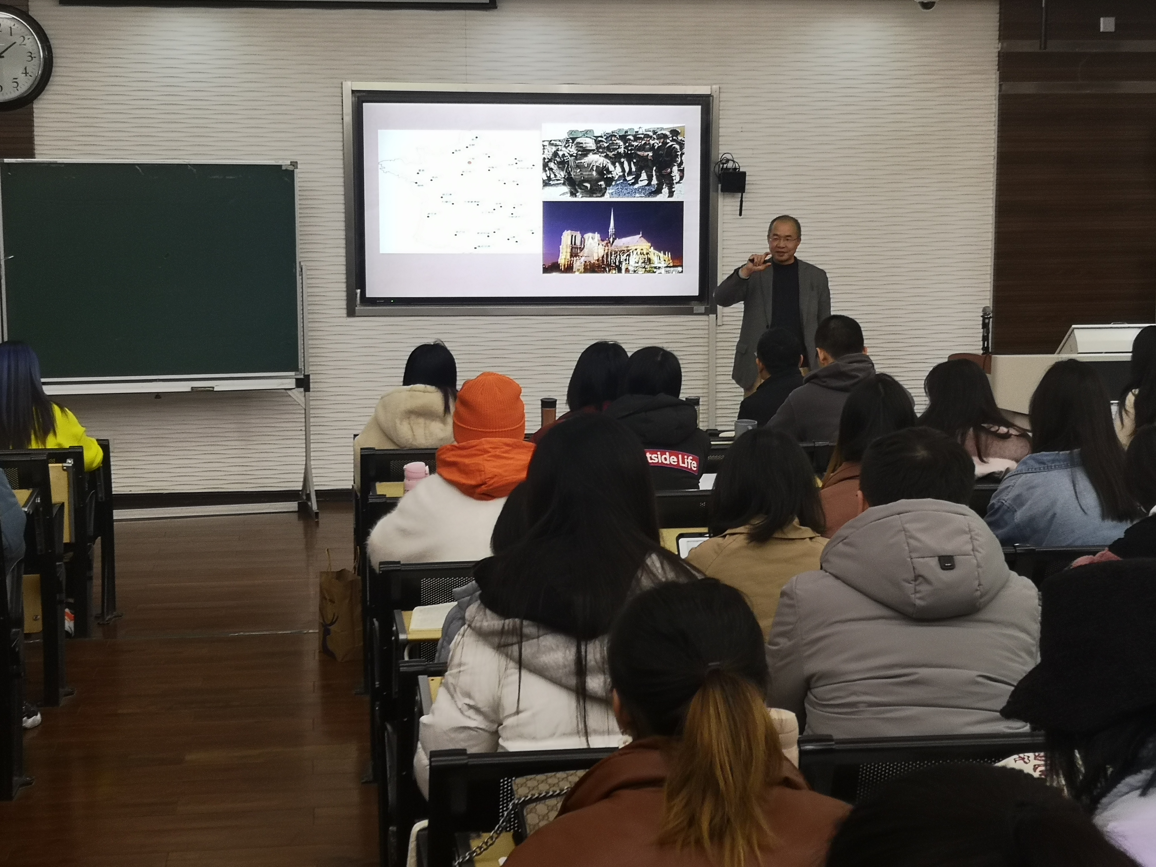 本次讲座的主题围绕着“法国当代戏剧一面大旗——剧作家科尔代斯”进行,内容分为三部分:其生平,其创作作品,以及科氏戏剧观及科式戏剧特点。宫教授的讲授由浅入深,整个过程妙趣横生,讲座氛围十分融洽。