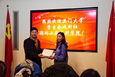 最后,港澳台办公室主任张云蕾带澳门同学参观了上戏华山路校园,并鼓励大家报考上戏各类专业或积极参与各种交换活动。希望澳门同学能成为上戏大家庭的重要成员,共同推动两岸三地青年的艺术文化交流,让一国两制发扬光大。