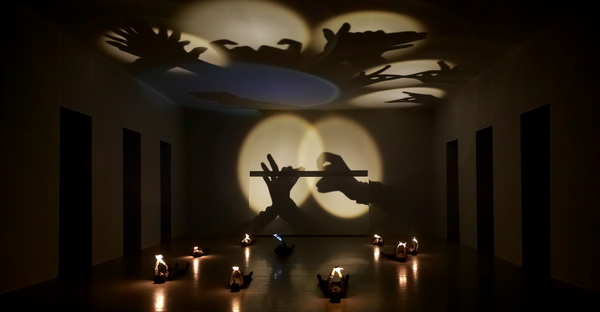 演员们利用箱型空间和头灯、手电、切割灯、投影仪,在舞台上玩起了手影游戏。他们时而与“巨手”打闹嬉戏,时而互相模仿做“镜子游戏”,时而与实时捕捉技术互动即兴舞蹈,甚至还玩起了“美术馆奇妙夜”,与美术馆值夜班的保安大玩“我们都是木头人”……即便没有很强的故事线,也让观众看得乐趣连连。