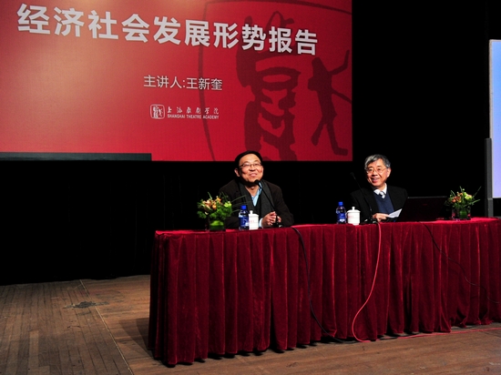 今天(12日)上午,我校在新空间举行经济形势报告会。著名经济学家、上海市工商联主席、原上海市政协副主席、原上海外贸学院院长王新奎教授担任主讲。党委书记楼巍主持会议,院长韩生,副院长刘志钢、孙惠柱、黄昌勇、宫宝荣,校务委员会副主任葛朗和全体中层干部、有关教师共计80余人出席会议。
