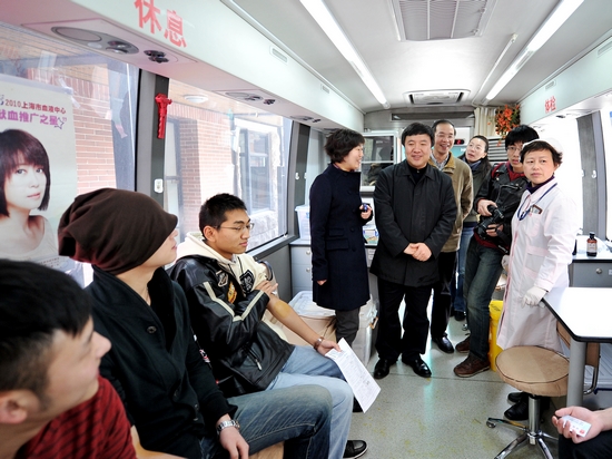 3月16、17日我校华山路校区和莲花路校区的两百余名同学参加了无偿献血活动。上海戏剧学院院长韩生、副院长刘志钢、副院长宫宝荣、校务委员会副主任葛朗等校领导分赴各个献血点慰问同学,学生处(主持工作)副处长徐咏、团委书记陈云等老师为献血同学发放了牛奶、巧克力等营养品。义务献血车上下秩序井然,同学们面对义务献血活动踊跃而又兴奋,志愿者无微不至服务献血同学。