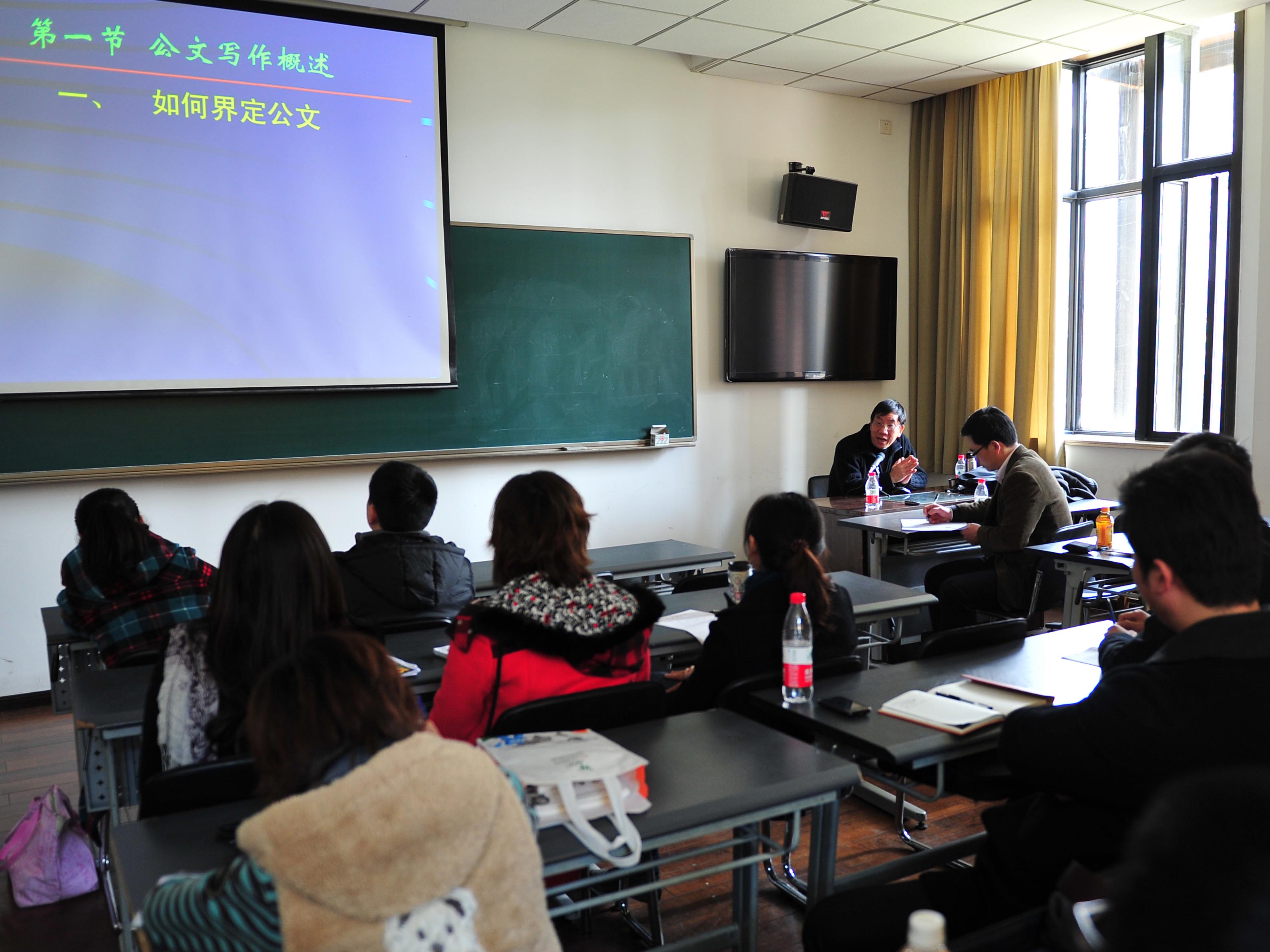 近日,院办和人事处联合举办的“青年干部公文写作训练讲座”第一讲在红楼207教室举行,全校各院系部处和附属中专40多位老师参加了训练。华师大向国敏副教授的讲座,案例丰富、紧扣实际、生动有趣,让大家学习到公文写作的基本规范,以及请示、报告和通知三种基本公文的写作要求。本期讲座的第二讲将于本月14日下午举行。