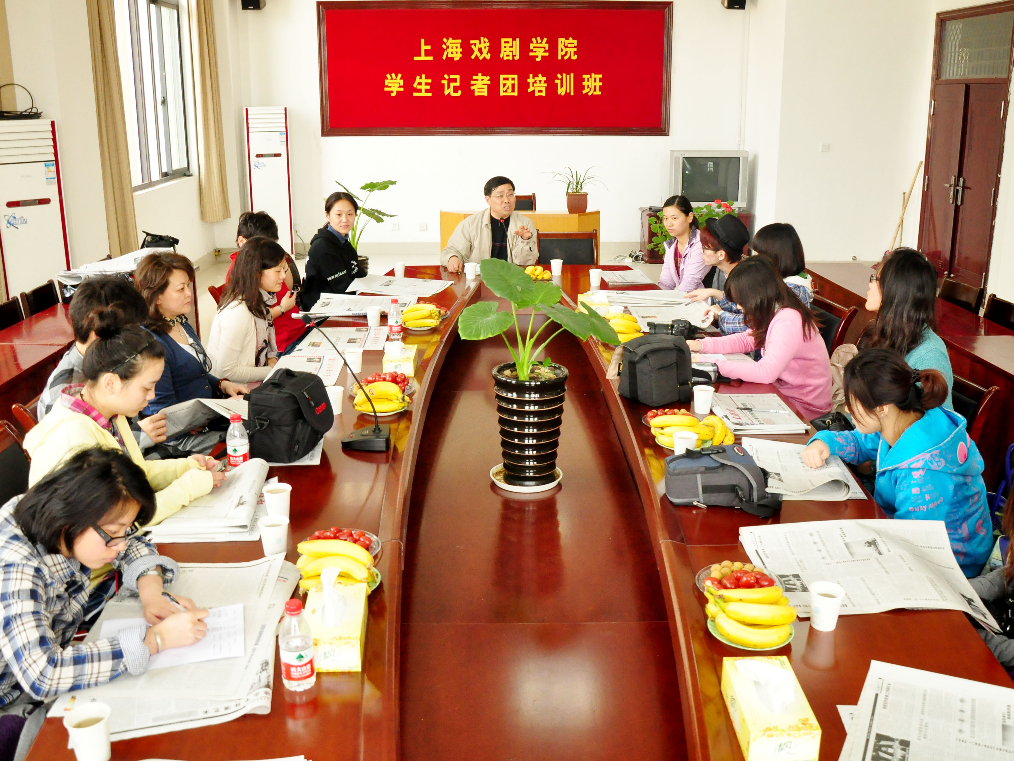培训班首先在景色秀丽的扬州大学新校区进行新闻专业的授课。张生泉老师主持会议并作学习辅导。他首先强调了作为记者所需具备的基本素质以及有待提升的地方,告诉大家新闻究竟是什么,鼓励大家努力培养自己发现新闻的眼光和捕捉新闻的意识,同时也给记者团成员下达了新的任务,提出了更高的目标。随后,吕品、黄书戎、刘佳奇三位老师也分别从报纸、网络、摄影等不同方面对同学们进行授课,传授给学员许多新闻采访及学习过程中的实践经验,并指出了同学们在工作中经常有的疏漏,也对上学期表现突出的同学进行了表扬。课上气氛活跃,学员们状态俱佳。