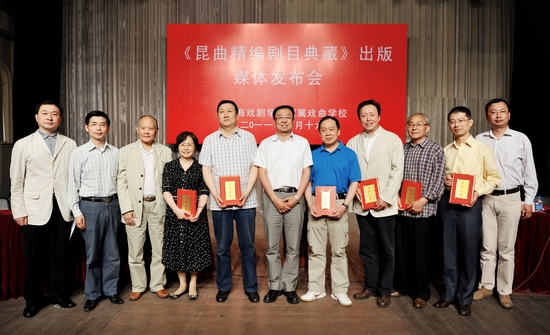 这套丛书前后耗时近六年,是上海戏剧学院教育高地整体规划中的组成部分,是继承和弘扬民族优秀文化遗产而进行的一项重大艺术工程。该套丛书共收集三百出剧目,每卷十五种,其结构框架分别为基础剧目、行当特色剧目、必学常演剧目和挖掘整理剧目;每出剧目附有“作者简介”、“剧情提要”、“艺术特色”、“人物穿戴砌末”、“剧本正文”、“注释”、“曲谱”等内容;具有系统性、示范性、实用性等特点。既适合演出团体、艺术院校、曲社等作为专业教材,也适合作为个人爱好者的阅读、欣赏和研究。上海戏剧学院叶长海教授专门为本书写了序言,他评论该书为“历代昆曲演出剧目的精品集成,称得上是新世纪的《缀白裘》”。今年五月,又恰逢联合国教科文组织授予昆曲为“人类口头和非物质遗产代表作”十周年纪念,大家在充分肯定这套丛书的价值和意义的同时,也希望以此为契机,进一步普及和发展昆曲的受众面。