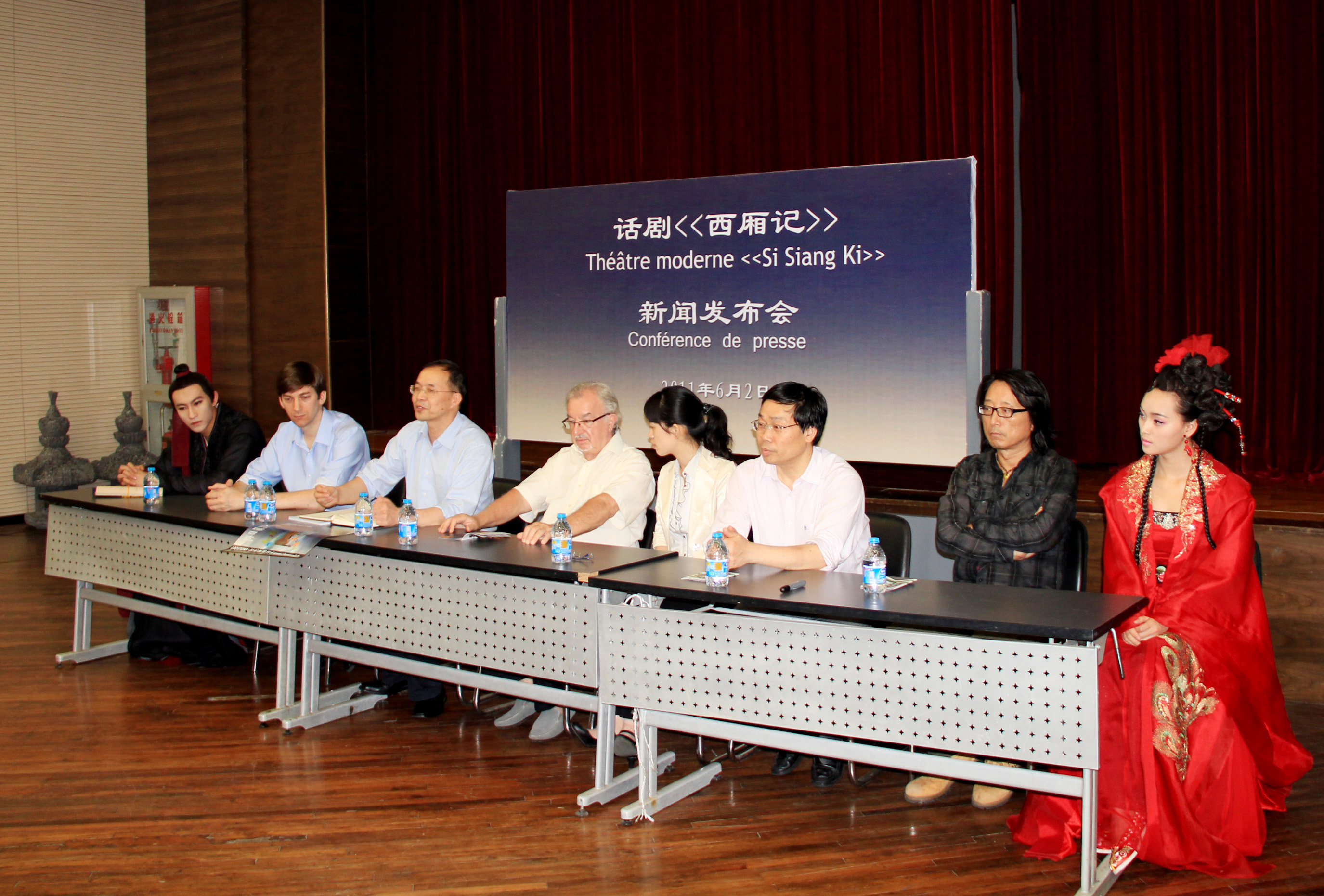 6月2日下午,由我校表演系08级学生演出的中国古典名剧《西厢记》(话剧版)新闻发布会在红楼东排举行。我校副院长宫宝荣、编剧曹路生、法国著名导演吉拉尔·吉拉斯以及法国领事馆代表参加了此次发布会。发布会由宣传部张生泉部长主持。
