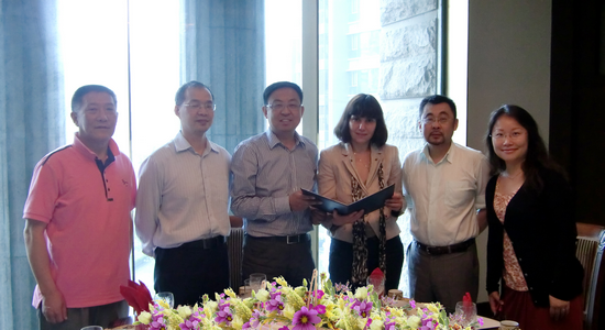 图为我校领导和老师与达维多娃女士合影