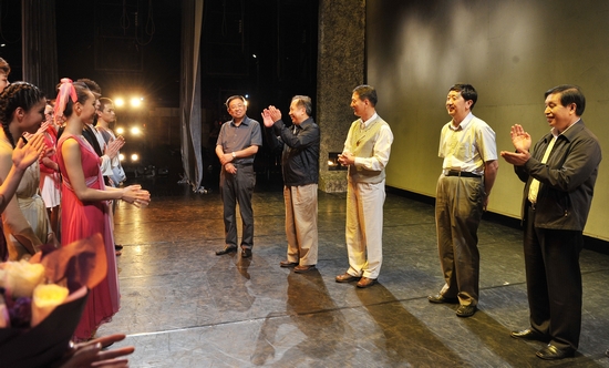 图为楼巍书记等领导对演员的表演赞不绝口