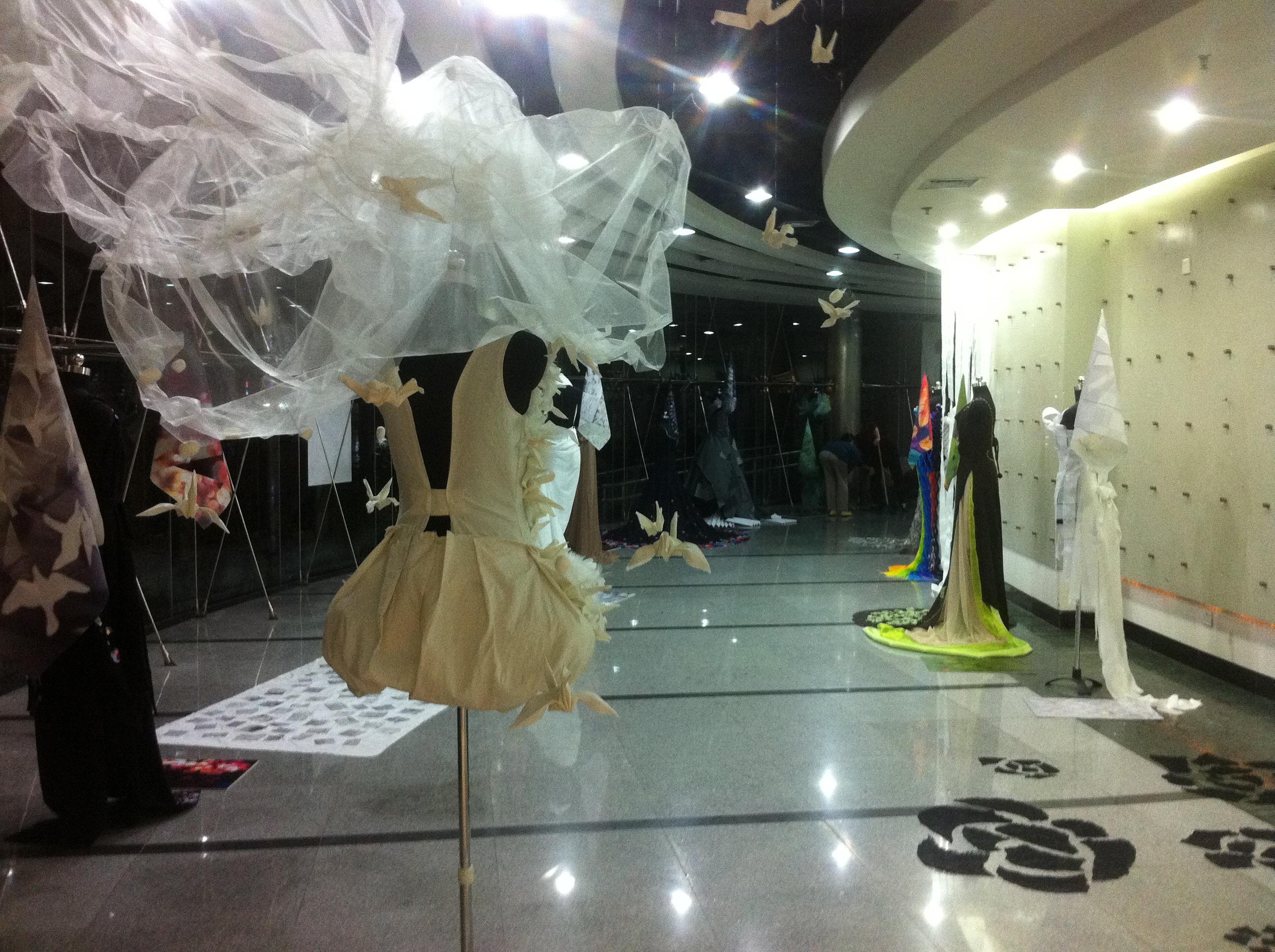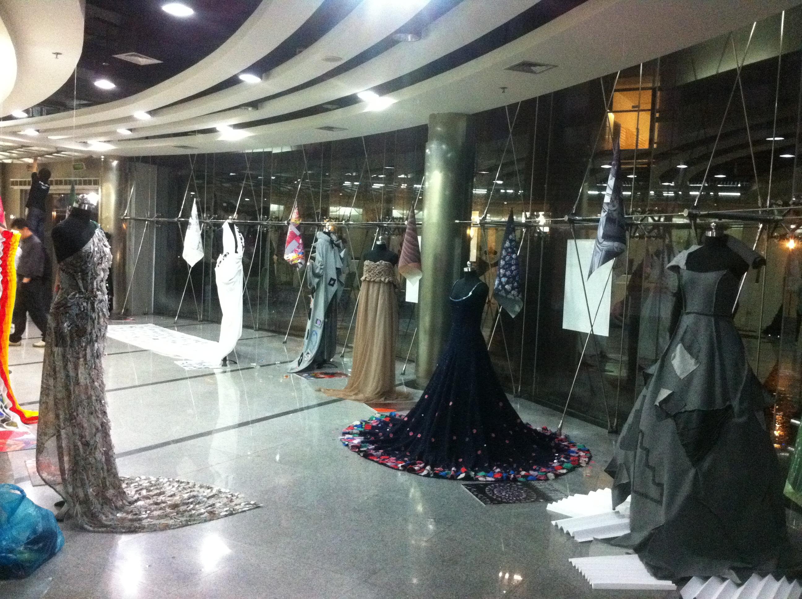 本次的时尚创意工作坊课程,历时9周,共72课时,学生跟随老师完成了从时尚灵感源的研究,到创意设计到制作实现作品,到装置空间表现展示。展览被命名为《从灵感源到时尚创意》,展示空间里写着:时尚大师Christian Dior说,最终,一切都融入我的生命,无论我想不想,一切都体现在我的设计中。这个一切,我们生活中的一切,是风、是雨、是云、是雾,是天、是地、是人,是感觉。我们采集这一切,在服装的媒介中呈现,我们一针一线,把灵感源变成我们的时尚创意。