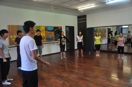 图为学生正在形体房进行操练