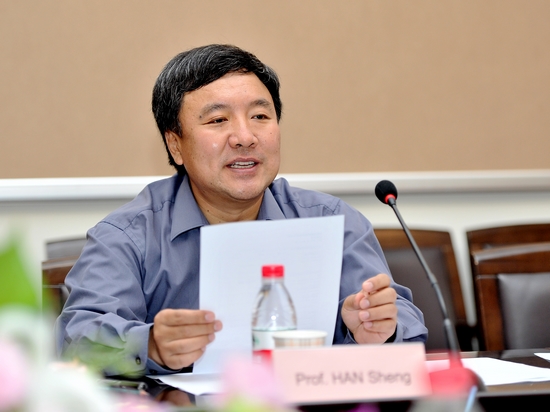 图为世界戏剧院校联盟轮值主席、上海戏剧学院院长韩生发言