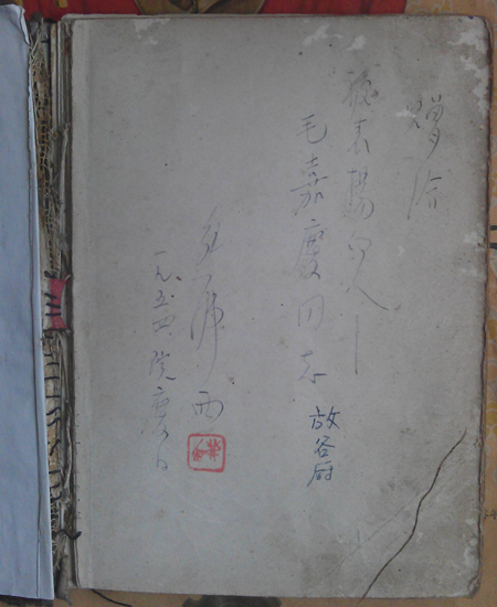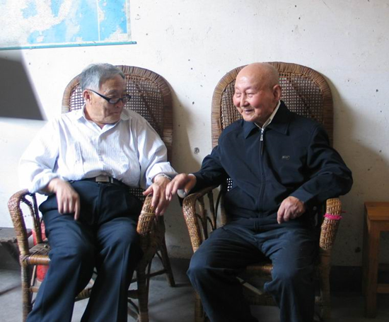 更令我激动和敬佩的是,2013年5月14日,学院由余忠老师带领,委派范和生、李宁、钱晨及人事处王�生,电教科张建雄同志从上海驱车赶往浙江上虞县,专程探望,并全程拍摄、采访现今已九十二岁的老校工毛介兴师傅。他是在1945年剧校成立时就进校工作的勤杂工,后来成为熊佛西院长的秘书,是唯一还健在的元老级员工。1962年5月因国家困难主动离职返乡务农,在学校服务了整整18年。我有幸一同前往。所去同志毛介兴除我外并不认识,但听说学院派人专程前来探望,激动得夜不能寐,反复感谢。我们相见后,他断断续续讲到3-5次佛西校长共事的故事,说到了熊校长如何敦促他们学习文化,以及如何接待梅兰芳、周信芳、田汉来剧校见熊院长的情况,解放后军管会来剧校接管的情况。临别前他还拿出了一早已准备好的文字、奖状、照片资料,以及当年离职时熊院长送给他的签名笔记本,密密麻麻、端端正正写的回忆文章。十分珍贵,令人欣喜,最后一起合影留念。