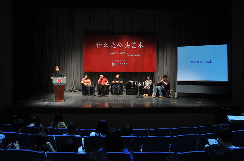 本次讲座进行近两个小时,同学们都通过汪大伟教授图文并茂的讲说,对《什么是公共艺术》有了比较明确的认识。正如汪大伟教授所说,公共艺术是一种艺术语言和方式解决公共问题特有的创作方式,它突破了传统美术的创作方法,完成了被关注的对象、创造方式、管理模式、评价标准的转变,促使创作成果与社会发展融为一体。作为上戏的一份子,在所学到的知识中,应该体会到公共艺术有着巨大的发展空间。我们可以通过场景再现,舞台表演等等方式来发展公共艺术。