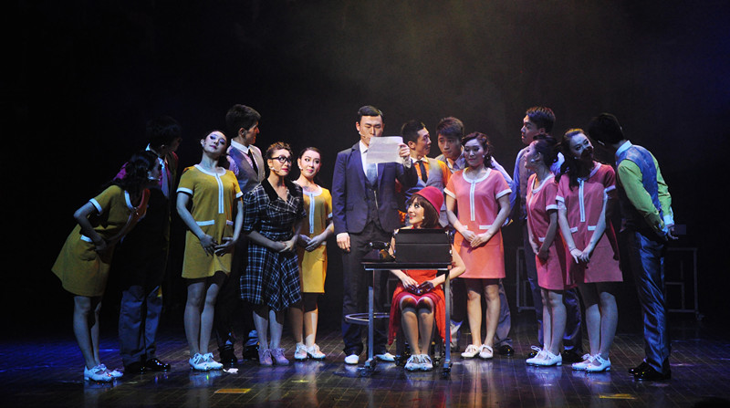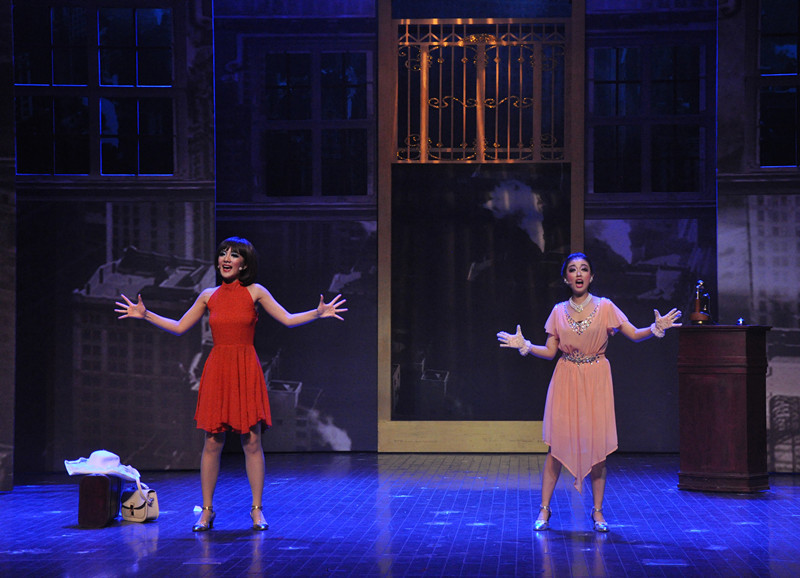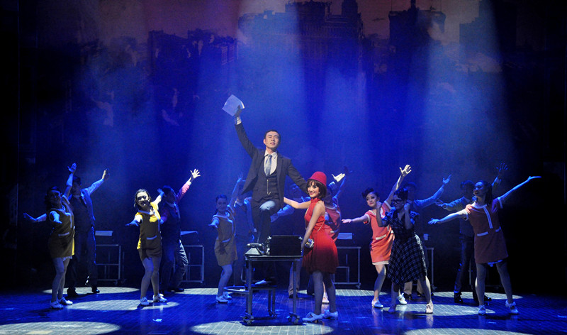 舞美的精心创作,令所有观众当大幕拉开的时候,就被深深吸引进了那20年代的纽约。Millie从一个乡村女郎的打扮,一下子转变成了红裙飘逸、脚踩闪亮高跟鞋的摩登女郎。Dorothy的一身淑女温婉的装扮,也为剧末揭开她的身份做了铺垫。不同景片的转移与利用,既节约了时间,又很好地利用了舞台展开自己的表演。令我最为喜欢的就是Millie去应试速记员的那段表演,可移动的打字机,耳边听着音乐伴奏,眼中看着演员们的舞蹈,非常有创意。打字机的声音仿佛是种节拍,拍打着演员们舞蹈的节奏。音乐剧总是可以利用一个小小的道具,来发挥出最大的效果。