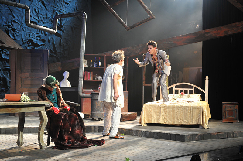 本次演出导演为我校表演系副教授、硕士生导师王学明。王老师说:“他犀利的笔锋指向社会,一次次撕破发达社会繁华的外衣,向观众和读者提供了一个又一个扭曲了的社会生活场景和异化的任务心态,他用一种令人战栗的幽默和诙谐把世界的逐渐毁灭展现给他的观众和读者,从中而提出严肃?古老而又常新的问题——人应该怎样活着?不禁令人深思……”也许,就是这样带着对问题的思考,他带领同学们上演了这样一台荒诞而不失喜剧色彩的故事。