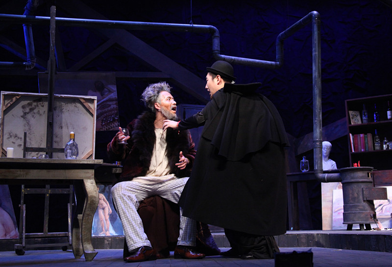 舞台上的道具灯光和服化,无不符合整个剧目的风格,伴随着“点蜡烛”和“拉窗帘”的人物动作,灯光在其中不同的变化,不仅让观众眼前一亮,也充分地展现了演员内心的挣扎和对现实的讽刺。