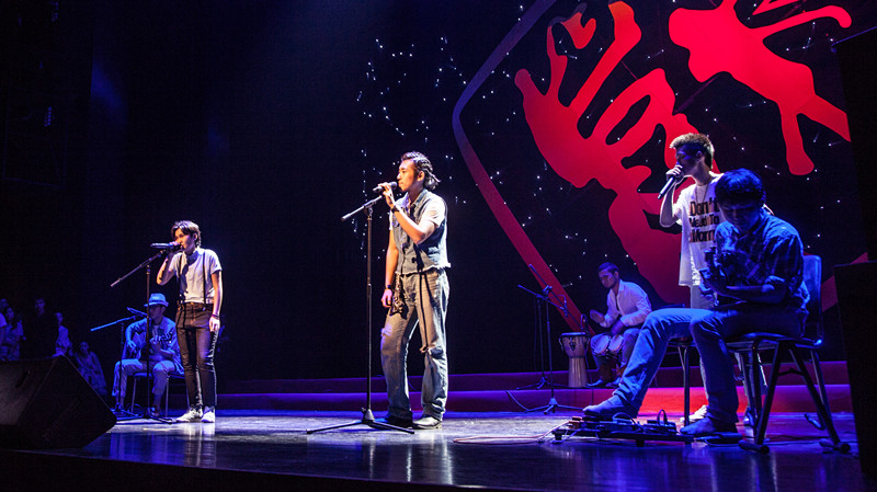 继多个院系的精彩表演后,万众期待的舞美系节目《完美夏天》歌曲表演在大家的尖叫声中开始了。开场舞美系播放了一段我们演出前的花絮视频,从演员的紧张排练到服装组的精选服装,再到化妆组的精致定妆……幕后的点滴汇聚在短短的一分钟中。随后,动人的口琴声独奏伴着幽蓝色的灯光缓缓飘荡在舞台上,此时,大屏幕上滚动播放着09级舞美系毕业生们大学生活的点点滴滴,毕业生们跟随着老照片回忆起4年来的欢笑与泪水、成功与失败。张翔宇和丽娜治愈的嗓音把观众都带进了回忆中的校园生活,李昕远和何逸伦轻轻的吉他伴奏为演唱增添了层次,努尔夏提和徐艺斐的手鼓打击乐和b-box的穿插演奏也成了表演的一大亮点……
