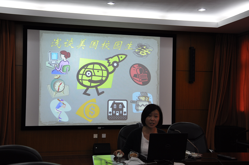 29日中午,戏曲学院青年教师吴汶聪(吴敏)在莲花路校区图书馆四楼会议室跟大家分享了她的美国校园生活。