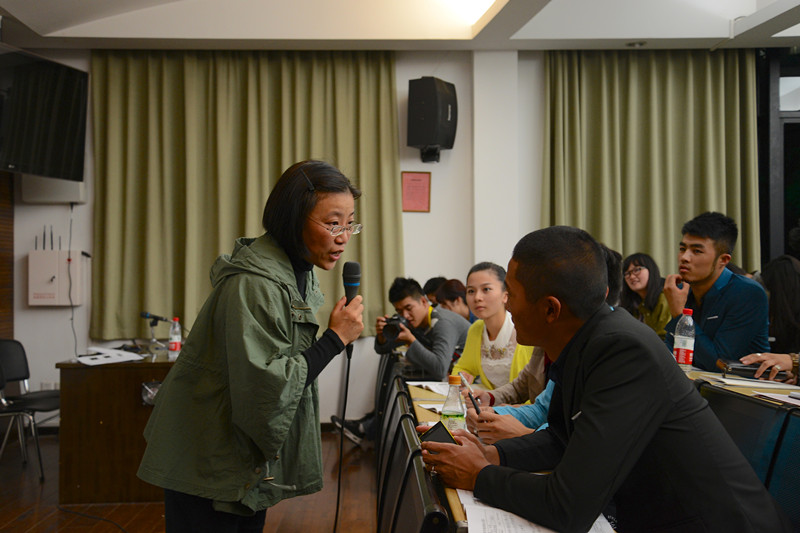 吴爱丽老师在今年大一新生军训时就给我们做过演讲,印象很深,她的演讲多源于自己生活中的感触,是对社会现象和艺术状态的发现与见解。在演讲开始时,作为上戏的资深教师,她竟然笑称自己不算什么学者大牌,就是来凑数的。也希望同学能够认真倾听她的心声。她的坦诚和幽默引得师生们一致的掌声。