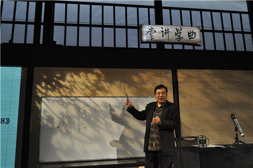 2013年10月25日上午,上海戏剧学院教授叶长海为学员们做了《中国艺术虚实谈》讲座,他关于中国艺术的见解和解析,带领学员们走进了充分意境、淡雅凝练的艺术世界。下午,著名京剧作曲家高一鸣点评了部分学员的作品,他以多年的创作经验为学员们提炼出了详实的理论点。(文、图:青音班 编辑:榕树)