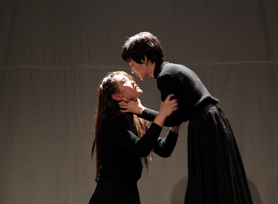 首先上演的是《贝尔纳达·阿尔瓦之家》中,两个小女儿对大姐的未婚夫产生情愫,一个私会大姐夫、一个偷走大姐夫照片被发现后发生的事。台上总共有七名女演员,其中五名女儿的扮演者发挥各自的演技,有的不惜扮丑,有的嚣张跋扈,有的温柔善良,总而言之,将五个女儿的性格进行了准确的诠释,教人印象深刻。戏中两位老女人的扮演者皆把握住了任务的特色,通过许多细节的动作表现人物,看出其用心。