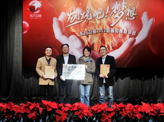 11月30日下午三点,“燃烧吧,梦想!东方卫视2012校园招聘宣讲会——暨上海戏剧学院与东方卫视‘实习生培训基地’签约仪式在端钧剧场举行。