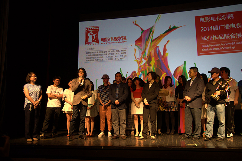 随后,领导和老师发表了热情洋溢的讲话。胡敏副书记向10编导全体同学所取得的成果表示热烈祝贺,黄昌勇副院长则指出毕业创作的“合作”理念应当继续推广,厉震林老师谈到关于跨院系联合毕业创作的具体设想。胡雪桦老师则对同学们进行了恳切的勉励,祝福大家取得更好的成绩。沙扬老师与同学们约定,要带着人生的新经验和新的作品回来分享。至此,连续四场的“电影电视学院2014届广播电视编导毕业作品联合展映”圆满落幕。让我们期待,明年此时再相见!(文、图:学生记者 王裕虎 编辑:榕树)